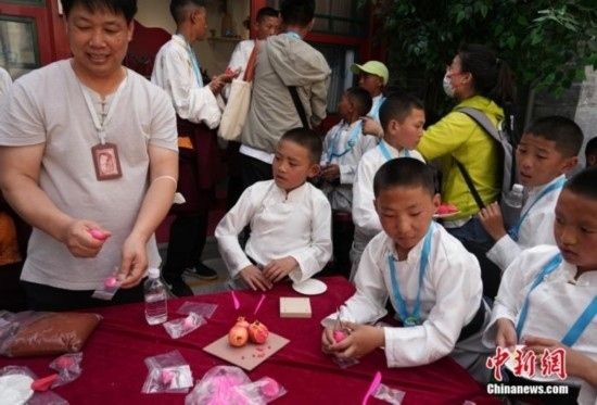 6月1日下午,孩子們來到了位于北京蒙藏學(xué)校舊址的中華民族共同體體驗館。蒙藏學(xué)校是近代第一所少數(shù)民族專門學(xué)校。在中華工藝美術(shù)體驗空間,孩子們跟著老師一起捏“石榴”;觀看演出時,孩子們與前來參加演出的民族藝術(shù)家們一起載歌載舞。