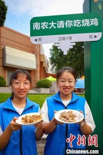 迎新現(xiàn)場,南京農(nóng)業(yè)大學食品科技學院精心制備“南農(nóng)燒雞”,為新生和家長了解學校特色、食品特色提供直觀感受。泱波 攝