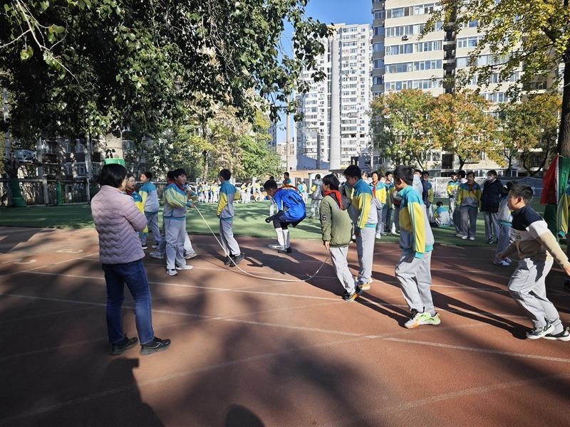為了引導(dǎo)孩子們課間走出教室,北醫(yī)附小根據(jù)季節(jié)設(shè)計(jì)大型集體項(xiàng)目,比如秋季開展的跳長繩,老師們也參與進(jìn)來搖繩,帶動(dòng)更多孩子參加體育鍛煉?!白寣W(xué)生在課間得到充分休息、活動(dòng),才能保證學(xué)生的課堂狀態(tài),從而促進(jìn)課堂教育教學(xué)質(zhì)量提升?!碧飮⒈硎尽?/p>