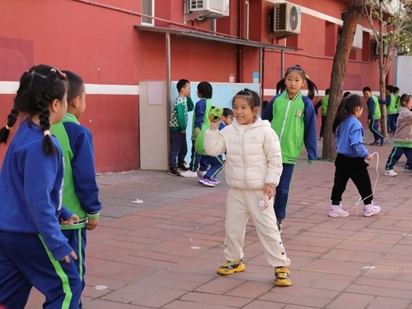 “快看,我跳繩能連著跳十幾個不間斷!”“走,丟沙包去!”下午2:55分,也是當(dāng)天最后一個課間,人民網(wǎng)記者在中國傳媒大學(xué)附屬小學(xué)低部校區(qū)看到,陽光下蹦蹦跳跳的“小豆包”們,正用一張張笑臉為課間活動“打分”。