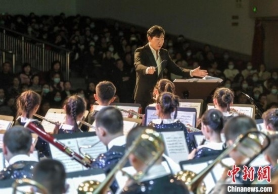 12月27日,新疆烏魯木齊市沙依巴克區(qū)教育系統(tǒng)“龍行龘龘 樂動(dòng)童年”2024年交響管樂新年音樂會(huì)在該市青少年宮舉辦,來自烏魯木齊市第27小學(xué)的交響管樂團(tuán)演奏了《紅旗頌》、《茉莉花》等經(jīng)典曲目,并與絲路名師合唱團(tuán)合作演出《青春之舞》、《最炫民族風(fēng)》等曲目。據(jù)介紹,該交響管樂團(tuán)成立于2014年,規(guī)模從最初的40余人發(fā)展到現(xiàn)今近70人,團(tuán)員平均年齡10歲。