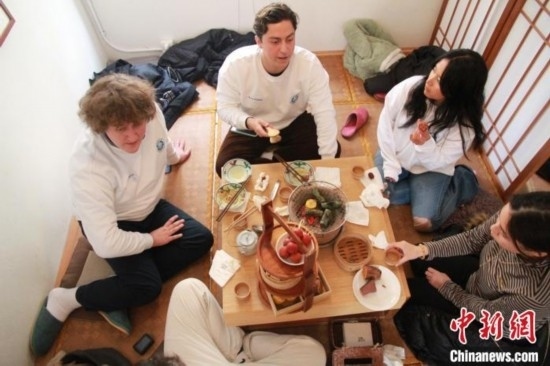 1月8日,來(lái)自美國(guó)加利福尼亞州州立大學(xué)長(zhǎng)灘分校的十余名學(xué)生來(lái)到山東青島,體驗(yàn)圍爐煮茶感受中國(guó)傳統(tǒng)文化。