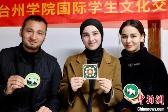 外國(guó)留學(xué)生展示制作完成的掐絲工藝畫(huà)。阮雅妮 攝