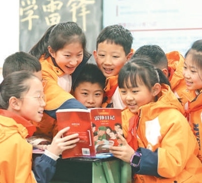 | 3月4日,四川省綿陽市,涪城區(qū)小學(xué)生閱讀《雷鋒日記》。宋豪新 陳冬冬攝影報道 |