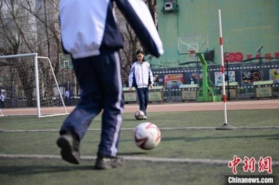 圖為沈陽(yáng)市第一三四中學(xué)濱河路分校學(xué)生在上體育課。中新網(wǎng)記者 于海洋 攝