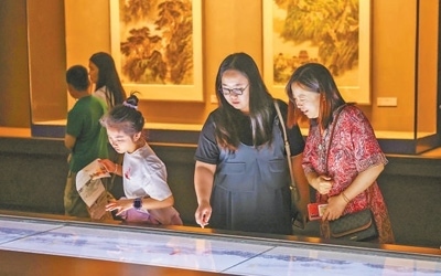 北京大運河博物館“北京與大運河歷史文化陳列”展廳內(nèi),觀眾在觀看展品。本報記者 張武軍攝