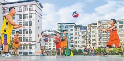 湖南省永州市道縣樹湘學?;@球訓練營,孩子們在參加籃球訓練。蔣克青攝(新華社發(fā))