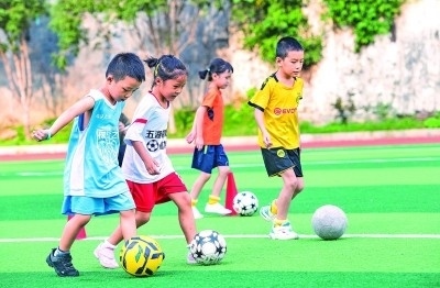 湖南永州一學(xué)校運(yùn)動(dòng)場(chǎng),孩子們參加足球訓(xùn)練。新華社發(fā)