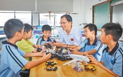 2022年,學(xué)校成立王方遒航模隊(duì),以紀(jì)念在當(dāng)?shù)刂Ы淌嗄甑摹爸袊?guó)好人”王方遒。“王老師生前在學(xué)校打造了航空航天科技室,組建了智能無(wú)人機(jī)隊(duì)和計(jì)算機(jī)編程小組,在孩子們心中播下了航模科技的種子?!背嗌芥?zhèn)中心小學(xué)校長(zhǎng)陳愛(ài)明說(shuō)。