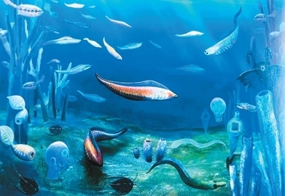 然而,在距今5.6億—5.18億年前的大約4200萬年間,發(fā)生了整個(gè)生命史上最為壯觀的生物創(chuàng)新事件——寒武紀(jì)大爆發(fā),即在不到地球歷史1%的時(shí)間內(nèi)誕生了90%的動(dòng)物門類。大量的動(dòng)物化石為追溯動(dòng)物進(jìn)化和人類遠(yuǎn)祖提供了重要標(biāo)本。前面提到的鳳姣昆明魚,就生活在寒武紀(jì)大爆發(fā)巔峰時(shí)期。
