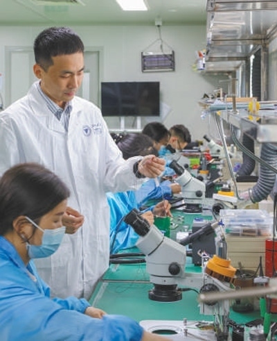 浙江大學衢州研究院科研人員在企業(yè)指導醫(yī)療器件表面涂層的產業(yè)化制備。浙江大學融媒體中心供圖