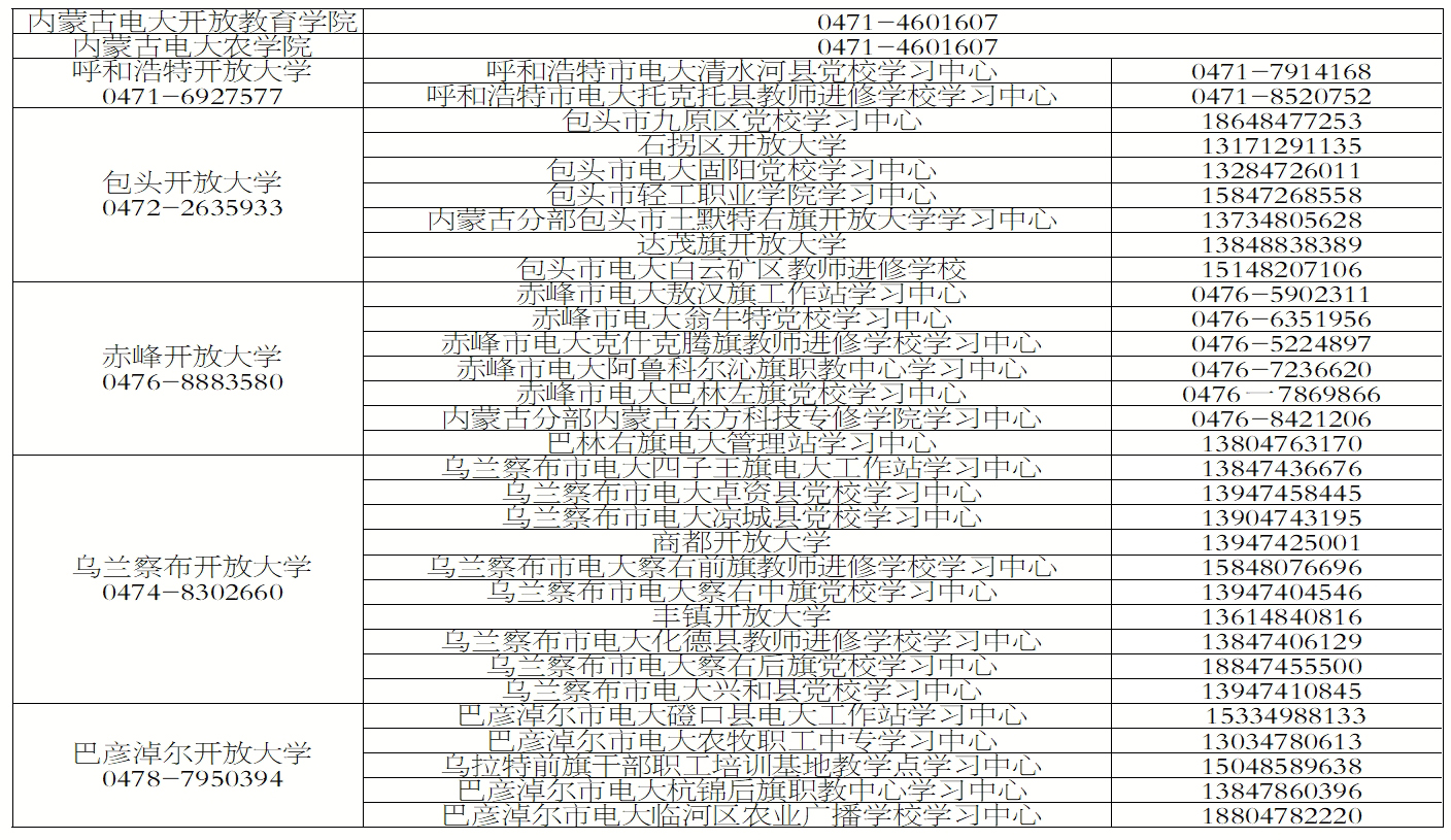 2025年春季各分校及所屬學(xué)習(xí)中心招生電話