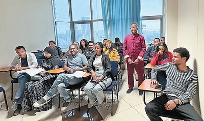 2021年,卡利布學成回到埃塞俄比亞,發(fā)現(xiàn)很多埃塞人有學習中文的需求,便開辦了“你好”中文學校。針對當?shù)厝说陌l(fā)音和學習習慣,開發(fā)了阿姆哈拉語和中文雙語教材,在當?shù)刂形慕逃I(lǐng)域獨樹一幟,吸引了上百名學員。這些學員不僅有即將赴中國留學的學生,還有與中國有生意往來的商人等。此外,卡利布教學內(nèi)容的一部分是教中國人學習阿姆哈拉語,旨在幫助大家更好地融入當?shù)厣睢?/p>