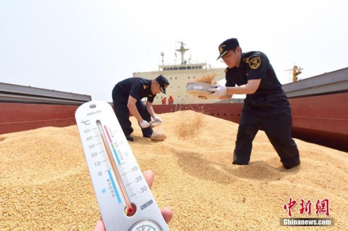 資料圖:海關(guān)人員對停泊于煙臺港檢疫錨地的“公主雅典娜”輪上的輸華大豆進(jìn)行感官檢疫。 曲彥霖 攝