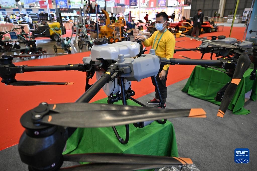 這是在科技強農館展示的植保無人機(12月15日攝)。新華社記者 郭程 攝