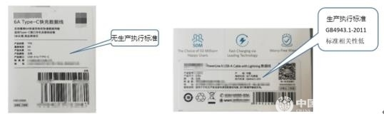 通過本次46款充電數(shù)據(jù)線的比較試驗(yàn),我們發(fā)現(xiàn)行業(yè)存在產(chǎn)品信息標(biāo)注欠缺或未標(biāo)注等問題,個別產(chǎn)品外包裝甚至沒有標(biāo)注產(chǎn)品型號、產(chǎn)品規(guī)格(承載電流值)、產(chǎn)品生產(chǎn)執(zhí)行標(biāo)準(zhǔn)等重要信息,既不利于消費(fèi)者正確選購和安全使用,也容易逃避監(jiān)管。