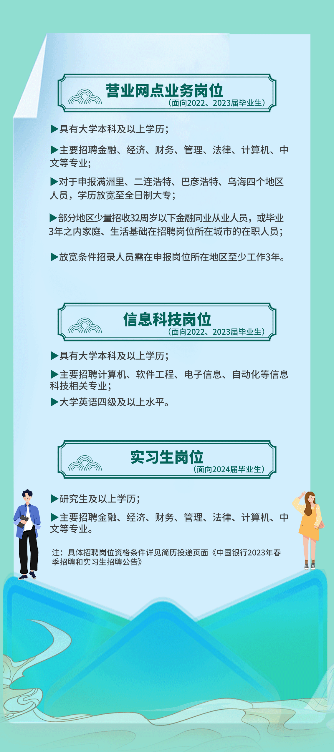 中國銀行內(nèi)蒙古區(qū)分行2023年春季招聘和實習(xí)生招聘全面啟動!