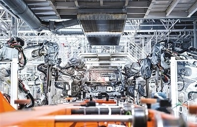 焊裝機(jī)器人在吉林長(zhǎng)春中國(guó)第一汽車集團(tuán)有限公司焊裝車間內(nèi)焊接車身