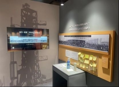 特別適合有航天工作背景的老同志互動(dòng)的“老照片找人”。展覽里選取了一張航天一院第二次黨代會(huì)的照片,進(jìn)行等比例放大,并給合影里的每一位航天精英標(biāo)注了序號(hào),邀請(qǐng)參觀展覽的“航天老人”們一起“認(rèn)人”,留下小紙條。類似翻看“同學(xué)錄”的小設(shè)計(jì),吸引了不少“航天老人”前來互動(dòng)。