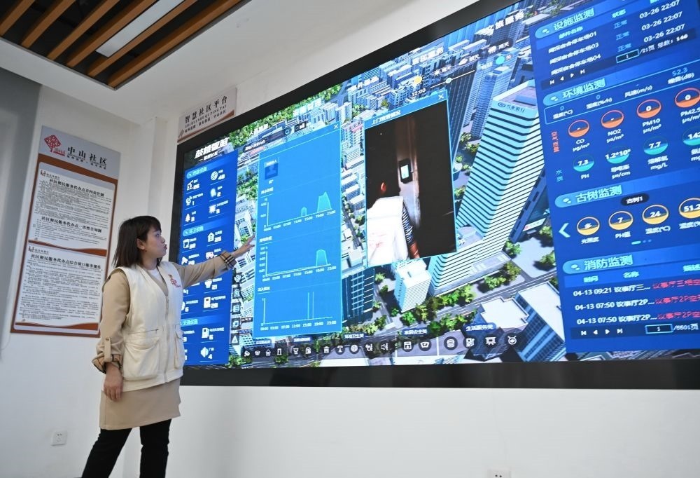 福州市鼓樓區(qū)是國(guó)家智能社會(huì)治理綜合實(shí)驗(yàn)基地,社區(qū)工作者林英在鼓樓區(qū)鼓東街道中山社區(qū)介紹“智慧社區(qū)”建設(shè)提升基層治理能力情況(4月25日攝)。新華社記者 林善傳 攝