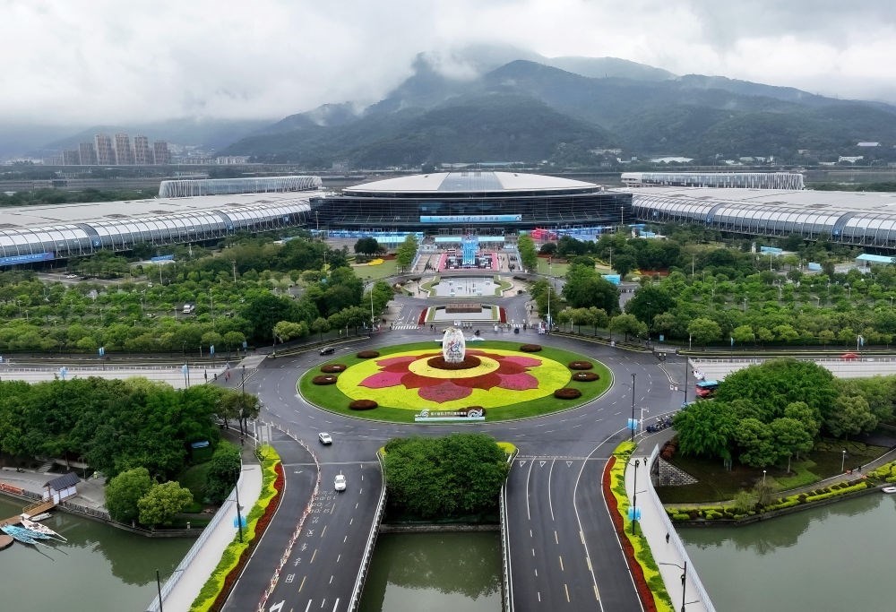 這是4月26日拍攝的第六屆數(shù)字中國(guó)建設(shè)峰會(huì)主辦地福州海峽國(guó)際會(huì)展中心外景(無(wú)人機(jī)照片)。新華社記者 魏培全 攝