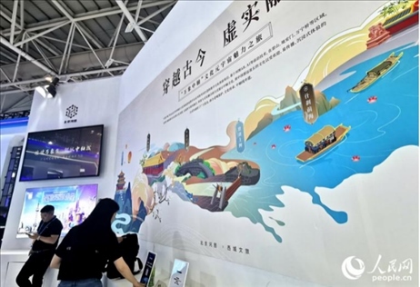 “我們對北京中軸線的場景進(jìn)行了復(fù)刻,構(gòu)筑了中軸線元宇宙,如果游客觀光北京中軸線上的打卡點(diǎn),用手機(jī)掃描眼前的景色,就會出現(xiàn)現(xiàn)實(shí)與虛擬交織的場景,仿佛穿越古今,置身于千百年前的時(shí)空?!北本┖訄D公司工作人員陳頌在展會現(xiàn)場介紹說。