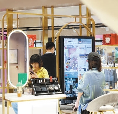 除了大型商圈,小型社區(qū)商圈的活力也被激發(fā)。沒有導(dǎo)購員、沒有收銀臺,在西安高新區(qū)蘭島廣場一間百余平方米的小店內(nèi),幾位女顧客正在試妝鏡前試用口紅、眼影等美妝產(chǎn)品。這家銀泰智慧“云店”提供了幾十個美妝品牌的上百種小樣,顧客隨到隨試,試用滿意后通過電子屏下單,同城當(dāng)日就可送達。銀泰“云店”項目負責(zé)人吳策說:“運用數(shù)字技術(shù)打通線上線下,‘云店’模式助力消費者在小型社區(qū)商圈享受優(yōu)質(zhì)的購物體驗。”