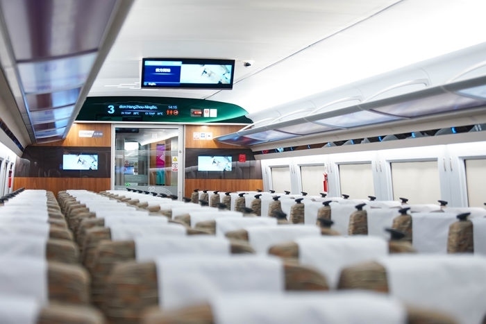 復(fù)興號(hào)亞運(yùn)智能動(dòng)車(chē)組列車(chē)車(chē)廂。上海鐵路局融媒體中心供圖