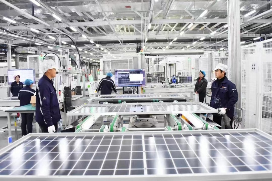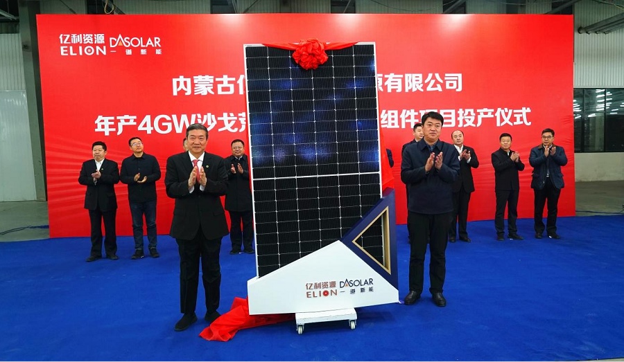 北疆新聞鄂爾多斯11月17日消息(記者 張楊)11月17日,內(nèi)蒙古億利一道新能源有限公司(下稱“億利一道”)首期4GW沙戈荒高效光伏組件生產(chǎn)線在鄂爾多斯高新區(qū)正式投產(chǎn)。組件產(chǎn)品成功下線,標志著億利圍繞沙戈荒新能源布局的氫裝備、光伏組件、支架以及儲能等新能源“四駕馬車”產(chǎn)業(yè)已全部實現(xiàn)投產(chǎn)。