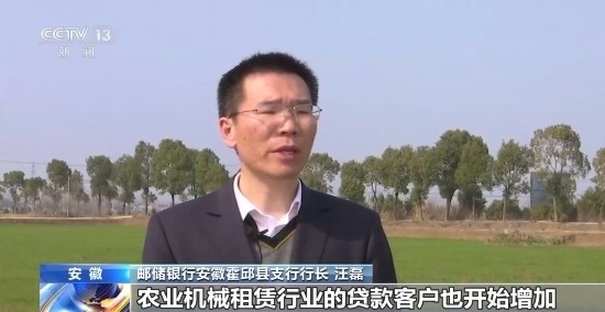 郵儲(chǔ)銀行安徽霍邱縣支行行長(zhǎng) 汪磊:隨著機(jī)械強(qiáng)農(nóng)的推進(jìn),農(nóng)業(yè)服務(wù)公司、農(nóng)業(yè)機(jī)械租賃行業(yè)的貸款客戶也開始增加,今年這類新型客戶貸款金額同比增幅超300%。