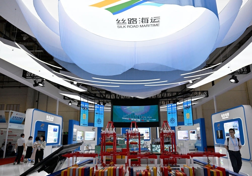 這是2024年9月8日拍攝的投洽會展現(xiàn)中國與“一帶一路”共建國家經(jīng)貿(mào)往來的絲路海運(yùn)展館。新華社記者 魏培全 攝