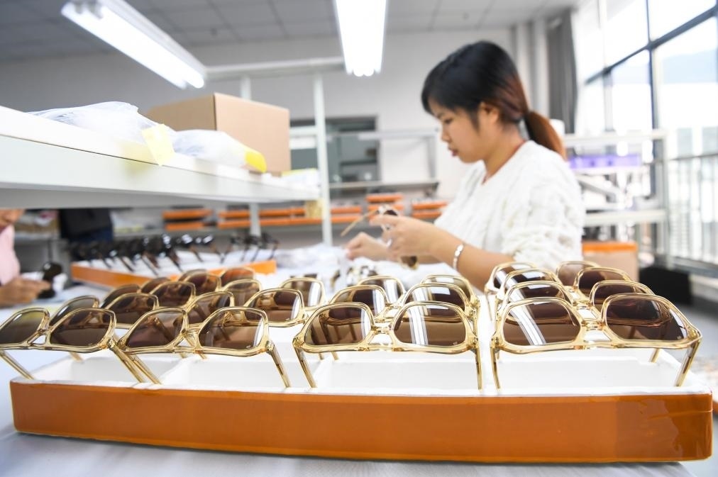 奉節(jié)縣生態(tài)工業(yè)園區(qū)一家眼鏡生產(chǎn)企業(yè)的工作人員在工作。新華社記者王全超 攝