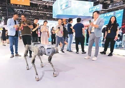 觀眾在2024年中國國際服務(wù)貿(mào)易交易會上觀看四足機器狗表演。以上圖片均由陳曉根攝(人民視覺)