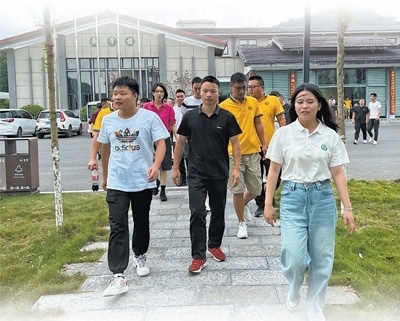 湖北省來(lái)鳳縣舊司鎮(zhèn),班主任(前排右一)帶領(lǐng)學(xué)員參觀全國(guó)鄉(xiāng)村治理示范村新街村。田 根攝(人民視覺(jué))