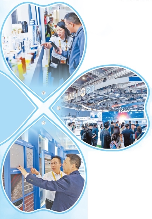 圖④:觀眾在達(dá)能公司的試飲臺(tái)了解并體驗(yàn)新款飲品。達(dá)能公司供圖 圖⑤:觀眾在碧迪醫(yī)療展臺(tái)前參觀。碧迪醫(yī)療供圖 圖⑥:工作人員在介紹立邦全場(chǎng)景建筑涂裝解決方案。本報(bào)記者 宦 翔攝