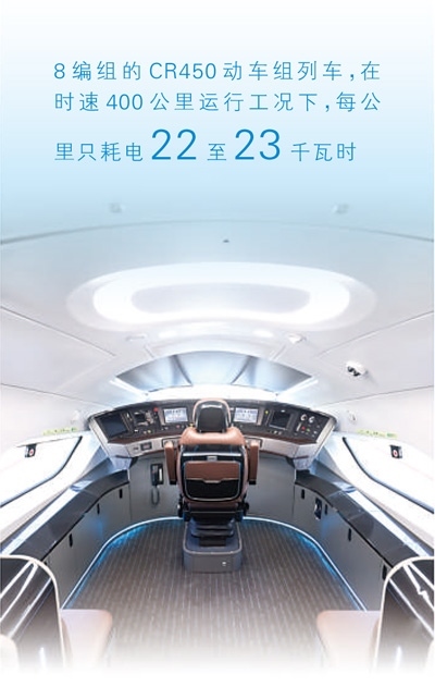 商業(yè)運營時速400公里,從時速400公里到時速0、制動距離只需要6500米,標準動車組每公里能耗只需22至23千瓦時……CR450動車組的研制,匯聚著眾多科研工作者的智慧與艱辛,見證著中國高鐵新的輝煌與榮光。