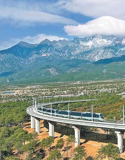 雪山、繁花與牧場(chǎng),構(gòu)成了一幅美麗畫卷,令人陶醉其中?!帮L(fēng)景太美了!”游客賴先生是第二次來云南麗江,這次旅行他體驗(yàn)了麗江雪山觀光火車。自2月12日開通以來,麗江雪山觀光火車迅速成為旅游界的新“爆款”。這列由我國(guó)自主研發(fā)的全球首列全景觀光山地旅游列車,以其獨(dú)特的設(shè)計(jì)和舒適的體驗(yàn),為游客帶來一場(chǎng)別具一格的雪山之旅,更成為連接麗江古城與玉龍雪山的“黃金紐帶”。