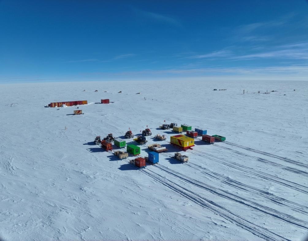 中國第41次南極考察隊(duì)的內(nèi)陸車隊(duì)抵達(dá)昆侖站。新華社發(fā)
