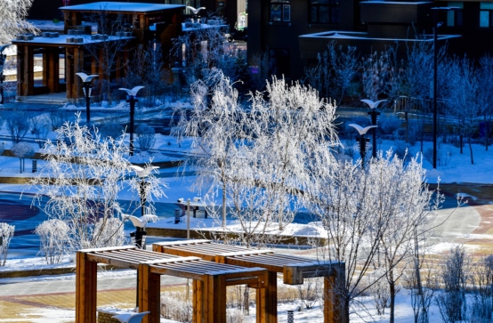 據(jù)了解,霧凇俗稱冰花、樹掛等,是低溫時空氣中水汽直接凝華,或過冷霧滴直接凍結(jié)在物體上的乳白色冰晶沉積物,表現(xiàn)為白色不透明的粒狀結(jié)構(gòu)沉積物。霧凇形成需要氣溫很低,而且水汽又很充分的自然條件,是非常難得的自然奇觀。