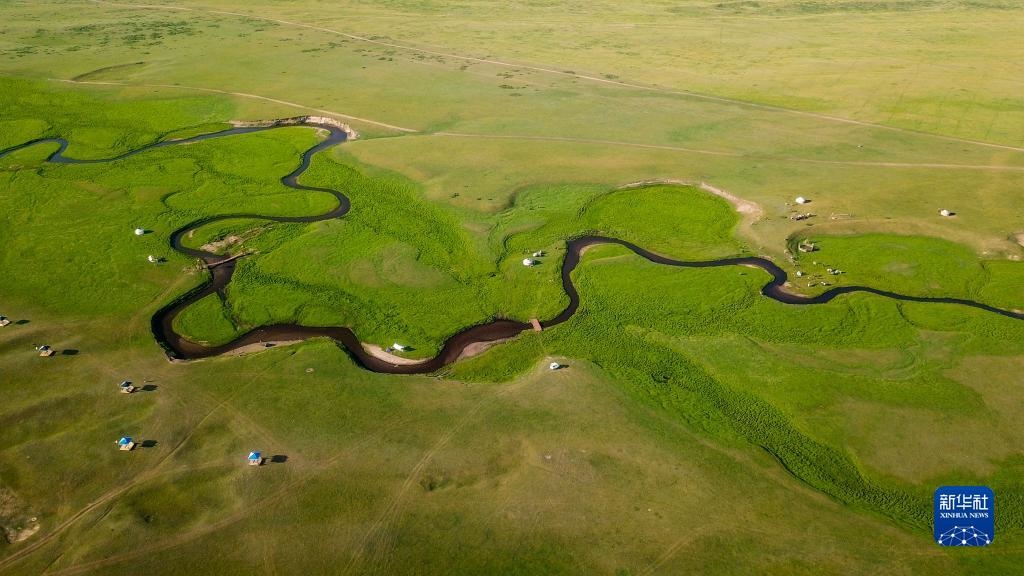 夏日,內蒙古錫林郭勒盟西烏珠穆沁旗的草原綠草如茵,風光旖旎。新華社記者任軍川攝