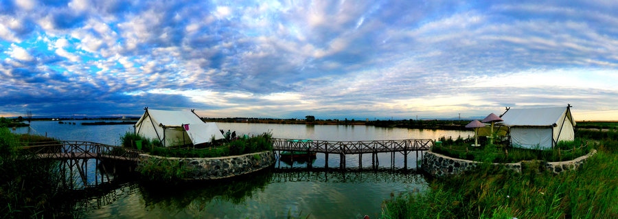 夜幕下的湖邊帳篷區(qū) 記者 張楊攝影