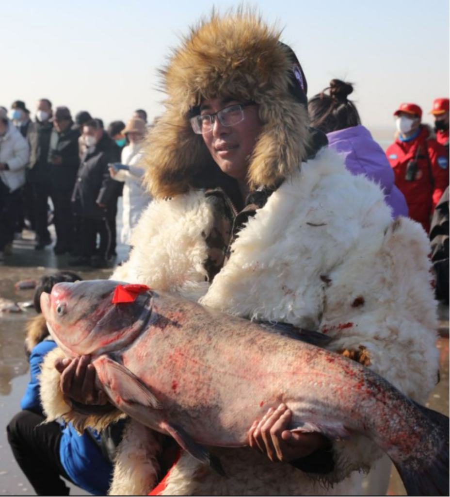 據(jù)了解,哈素海第一屆冰雪旅游節(jié),頭魚現(xiàn)場拍賣出6.8萬元的價格,2024年頭魚拍賣成交價為40.8萬元。