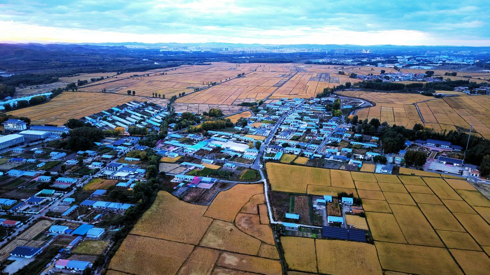 暮色時(shí)分三合村的稻田一片金黃
