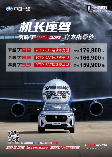 6月3日,奔騰T99 運動版空中發(fā)布會,于??谇巴戏实腏D99航班上舉行。