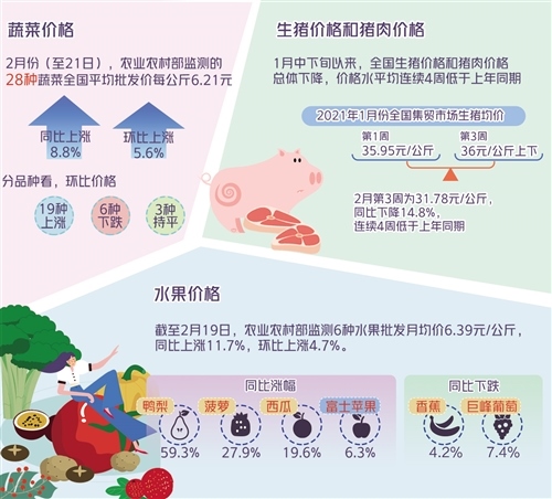 東風(fēng)和煦,冰雪消融,大江南北到處洋溢著新春的氣息。春節(jié)長假期間,全國豬肉果蔬價格怎樣呢?節(jié)后走勢如何?就此,記者采訪了業(yè)內(nèi)專家。