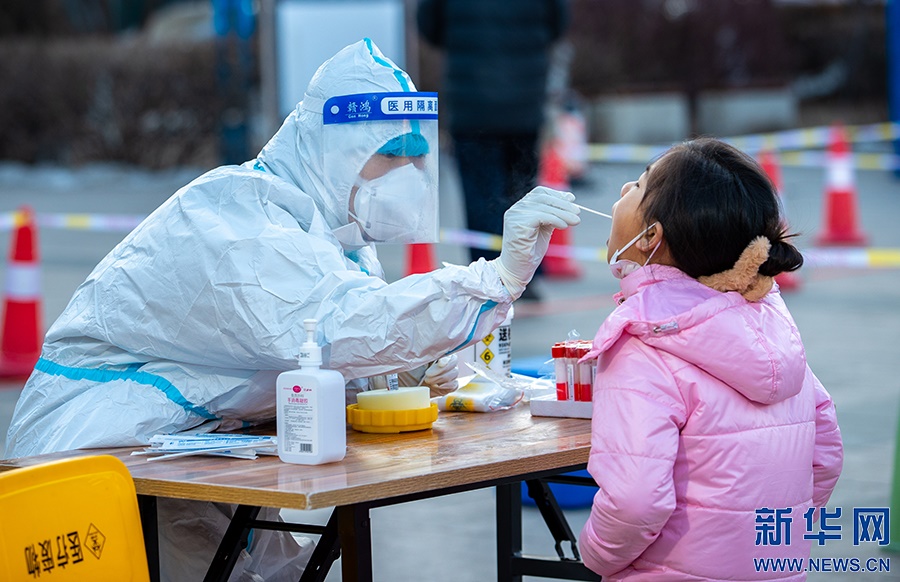 2月21日,在呼和浩特市玉泉區(qū)小召街道五塔寺廣場臨時(shí)核酸采樣點(diǎn),醫(yī)護(hù)人員為市民進(jìn)行核酸采樣。新華網(wǎng)發(fā) (丁根厚 攝)