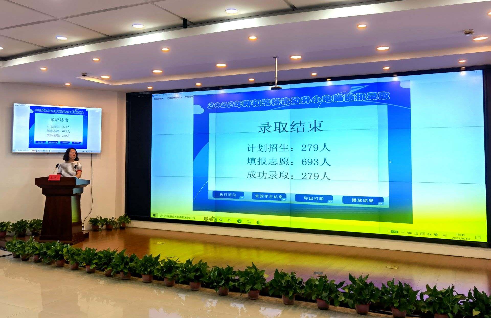 2022年8月10日15時30分,呼和浩特市2022年幼升小農大附中小學部、秋實小學電腦隨機錄取現(xiàn)場會舉行,共279人經(jīng)搖號錄取。