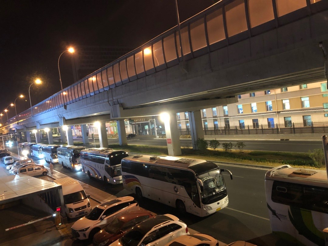 同學(xué)們開始登車前往隔離點