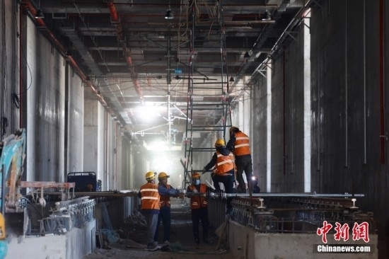 2月20日,施工人員在北京地鐵12號(hào)線東壩車輛段施工。北京地鐵12號(hào)線正線全長為29.6km,西起西四環(huán)四季青橋南,東至東壩北街,途經(jīng)海淀、西城、東城、朝陽四個(gè)行政區(qū),全線共設(shè)21座車站,其中換乘站15座,全線建成通車后,將與4號(hào)線、5號(hào)線、8號(hào)線等12條線路實(shí)現(xiàn)換乘。當(dāng)前12號(hào)線車輛陸續(xù)進(jìn)場,工程正在加速推進(jìn)。中新社記者 富田 攝