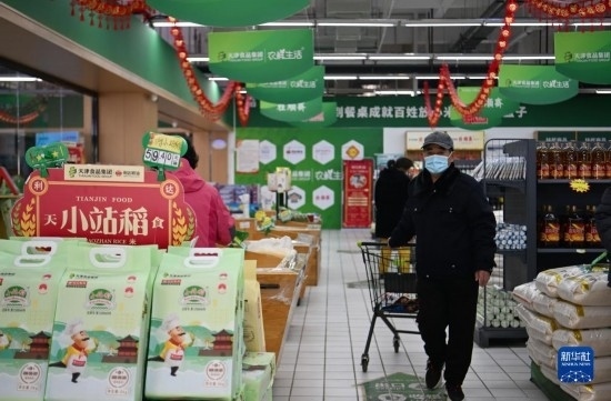顧客在天津食品集團(tuán)津農(nóng)精品體驗(yàn)店選購(gòu)產(chǎn)品(2月23日攝)。